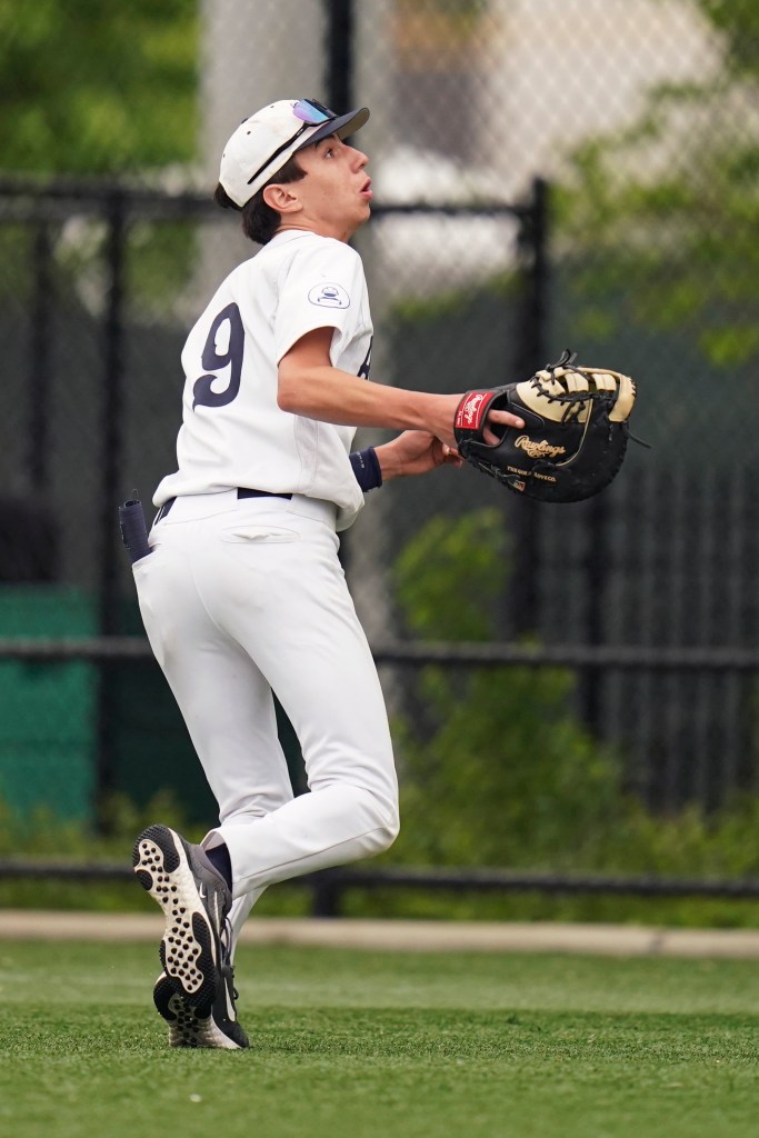 Simon Sherber-Brennan lines up the pop fly vs. John Jay.