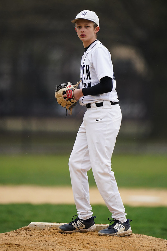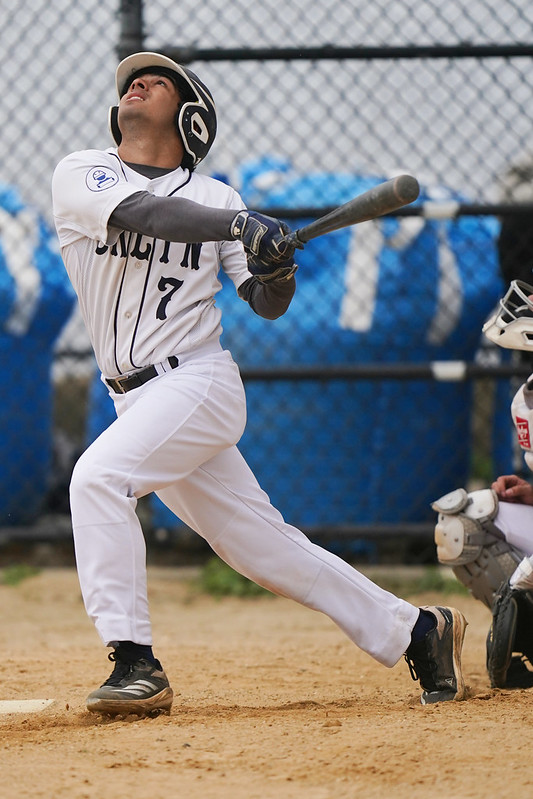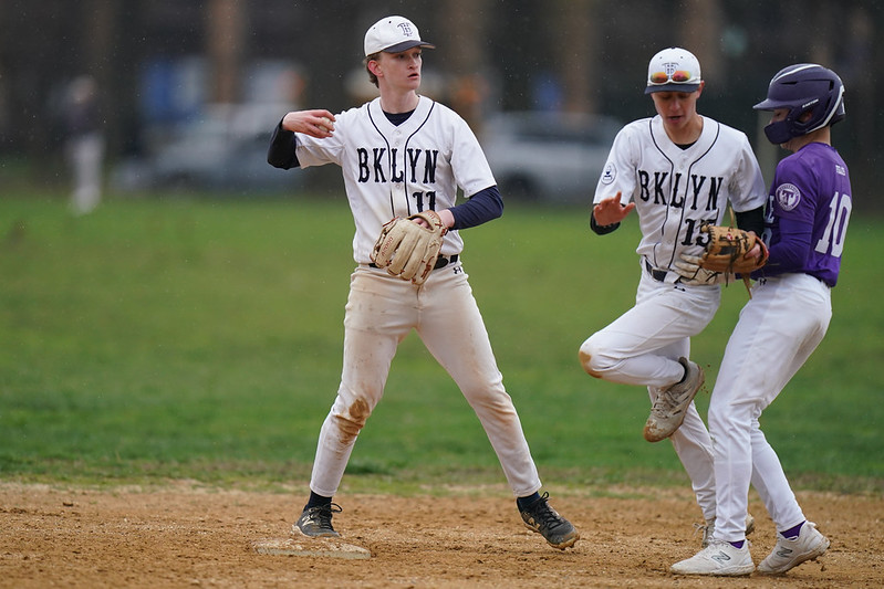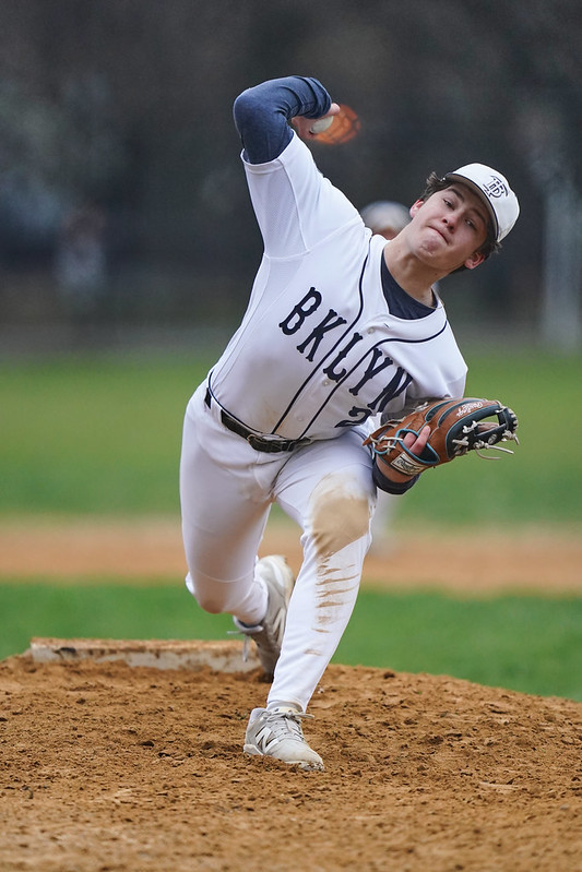 Silas got the surprise call after a scheduled starter was late to the 4pm game-time, owing to an AP exam that went long, the type of challenge our Brooklyn Tech ballplayers routinely face. Dealing with the weather (periodic rainouts and sodden fields) and permits (our game was moved up a day and to PG1) can be daunting enough. But our players face other hurdles as well, since academics always come first at Tech (unlike many programs, whose players were on the field as early as 1pm). But today, Silas was up to the challenge–damn the torpedoes!–navigating the Tottenville lineup and overcast chill and rain-drops, and a bunch of miscues by his defense. He never showed emotion and never gave up demonstrating outstanding awareness and control (4.2 IP, 6H, 3R/2ER, BB, 3K).