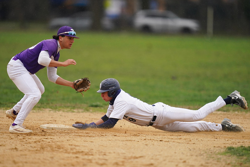 Trevor Nieuwenhuis is safe at second against Tottenville
