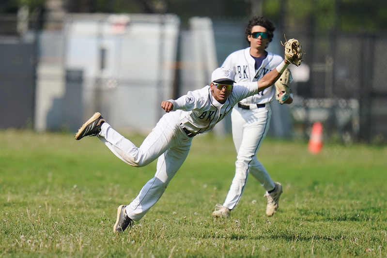 Aayan Ramamurthy relays the ball after a Grand Street single, as Shrey Vertes looks on