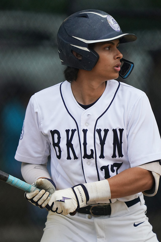 Andres Carson with one of his two hits vs. Grand Street ace