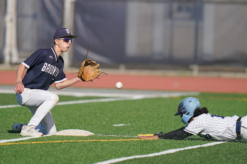 Shortstop Julian Ashley takes the throw against Lincoln.